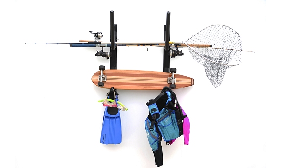 A patent pending, wall mounted rack system that lets you organize and store your skis, snowboards, surfboards, SUP’s, bicycles and anything else.